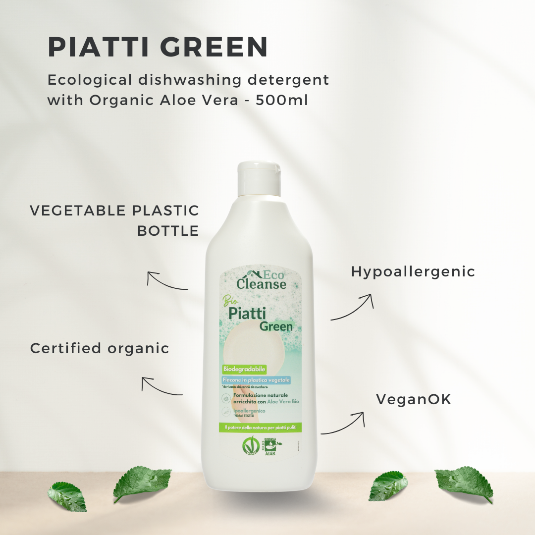 Ecological liquid detergent for hand dishwashing with organically grown Aloe Vera juice. Effective against greasy dirt and incrustations, just a few drops of product are enough to obtain naturally clean dishes in a short time.
