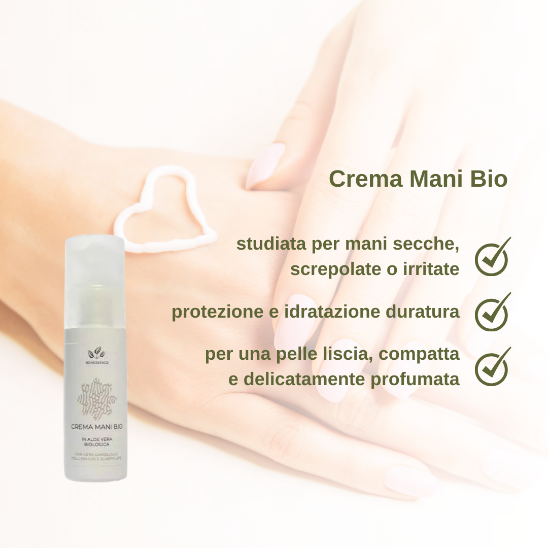 The Bio hand cream combines the moisturising and soothing properties of Aloe Vera with the softening and protective properties of Allantoin and Passionflower oil.
