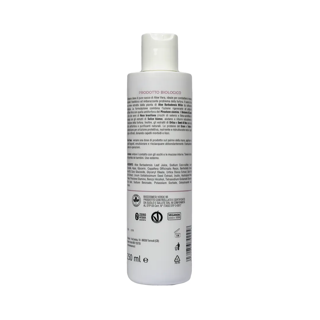 Inci / IngredientesAloe Barbadensis Leaf Juice, Sodium Coco-Sulfate, Lauryl Glucoside, Aqua, Glycerin, Coco Glucoside, Salix Alba Bark Extract, Hydrolyzed Wheat Protein, Urtica Dioica Leaf Extract, Glyceryl Oleate, Copaifera Officinalis Resin, Bertholletia Excelsa Seed Oil, Linum Usitatissimum Seed Extract, Inulin, Benzyl Alcohol, Piroctone Olamine, Tetrasodium Glutamate Diacetate, Citric Acid, Sodium Benzoate, Potassium Sorbate, Dehydroacetic Acid, Maltodextrin, Silica, Parfum*. *profumazione ipoallergenica