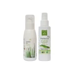 El kit consta de 1 Veraskin – gel de Aloe Vera 98,8% puro y 1 Protecta – spray repelente de insectos en tamaño de viaje.
