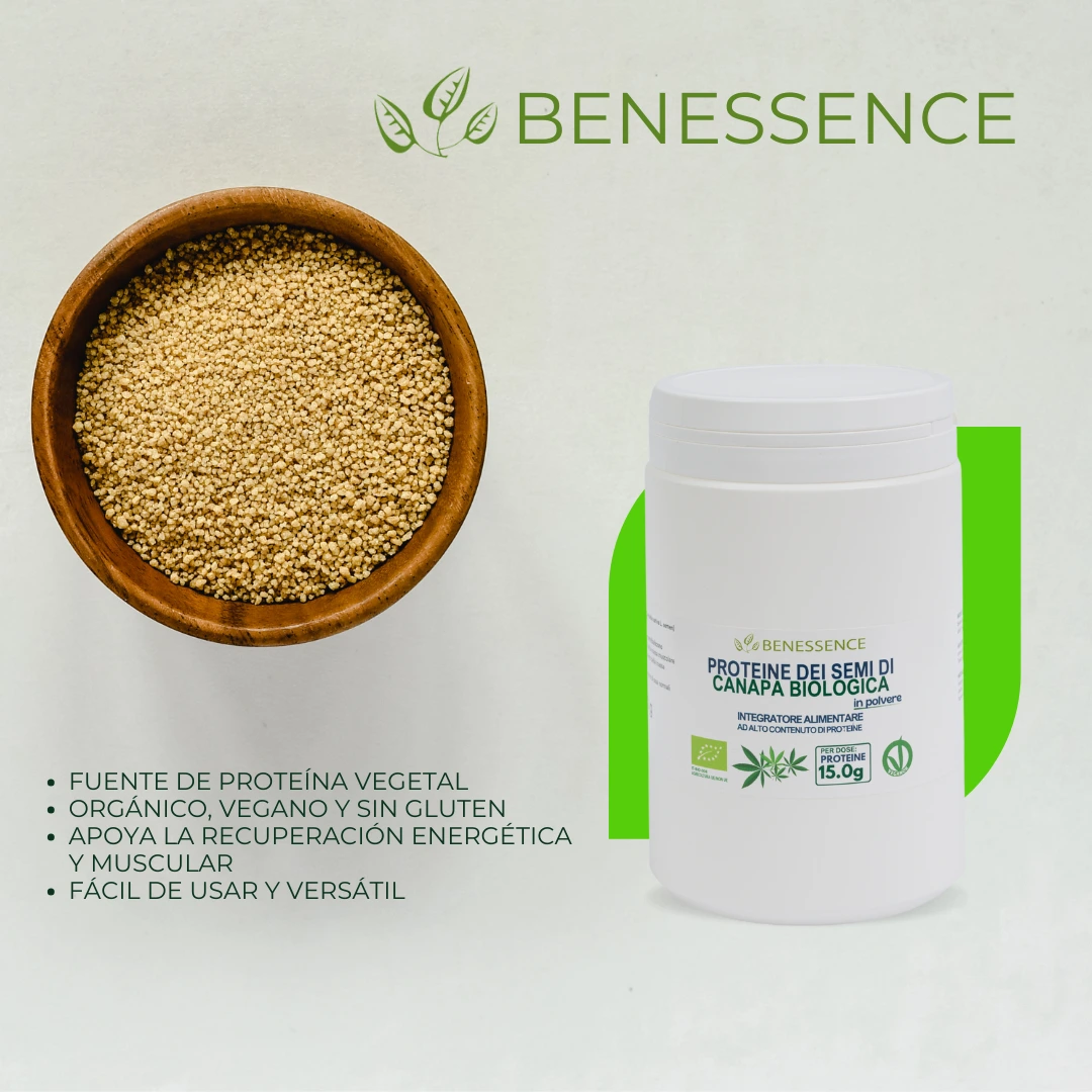 Por consiguiente, las proteínas vegetales de semillas de cáñamo orgánico son una fuente perfecta de proteínas y aminoácidos esenciales para favorecer el crecimiento y el mantenimiento de la masa muscular y promover la salud ósea.