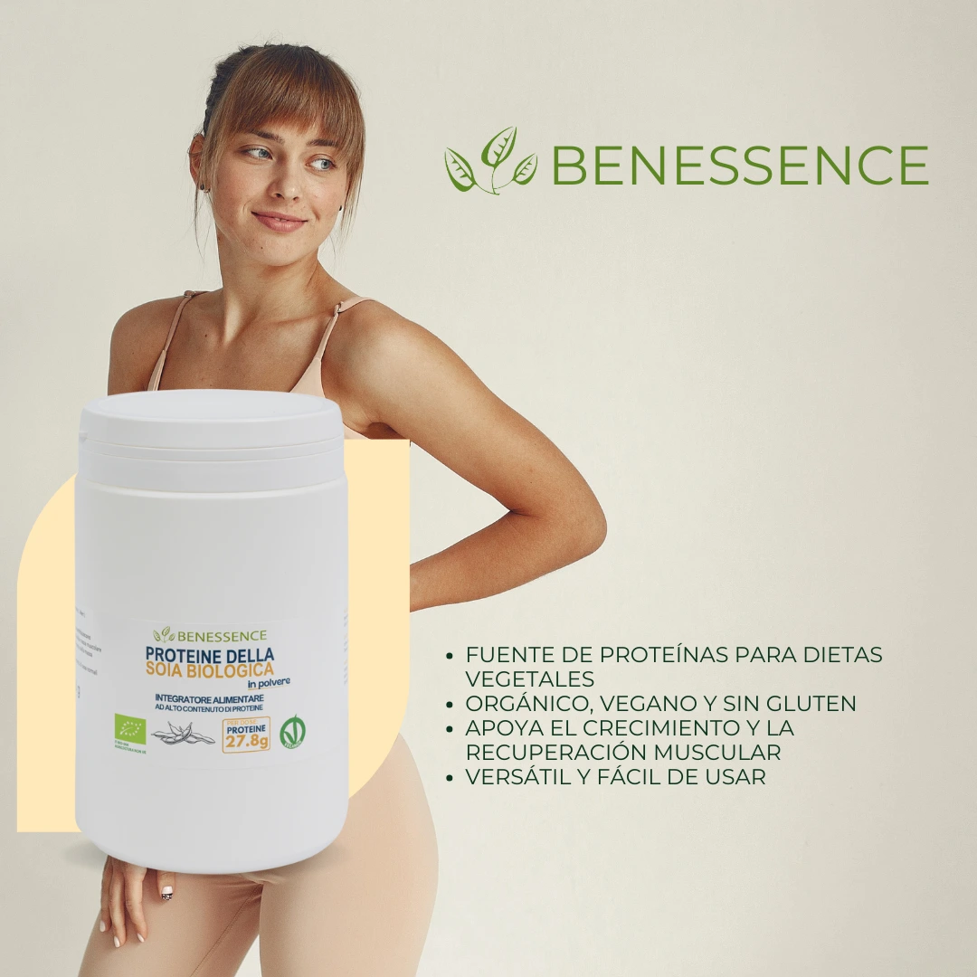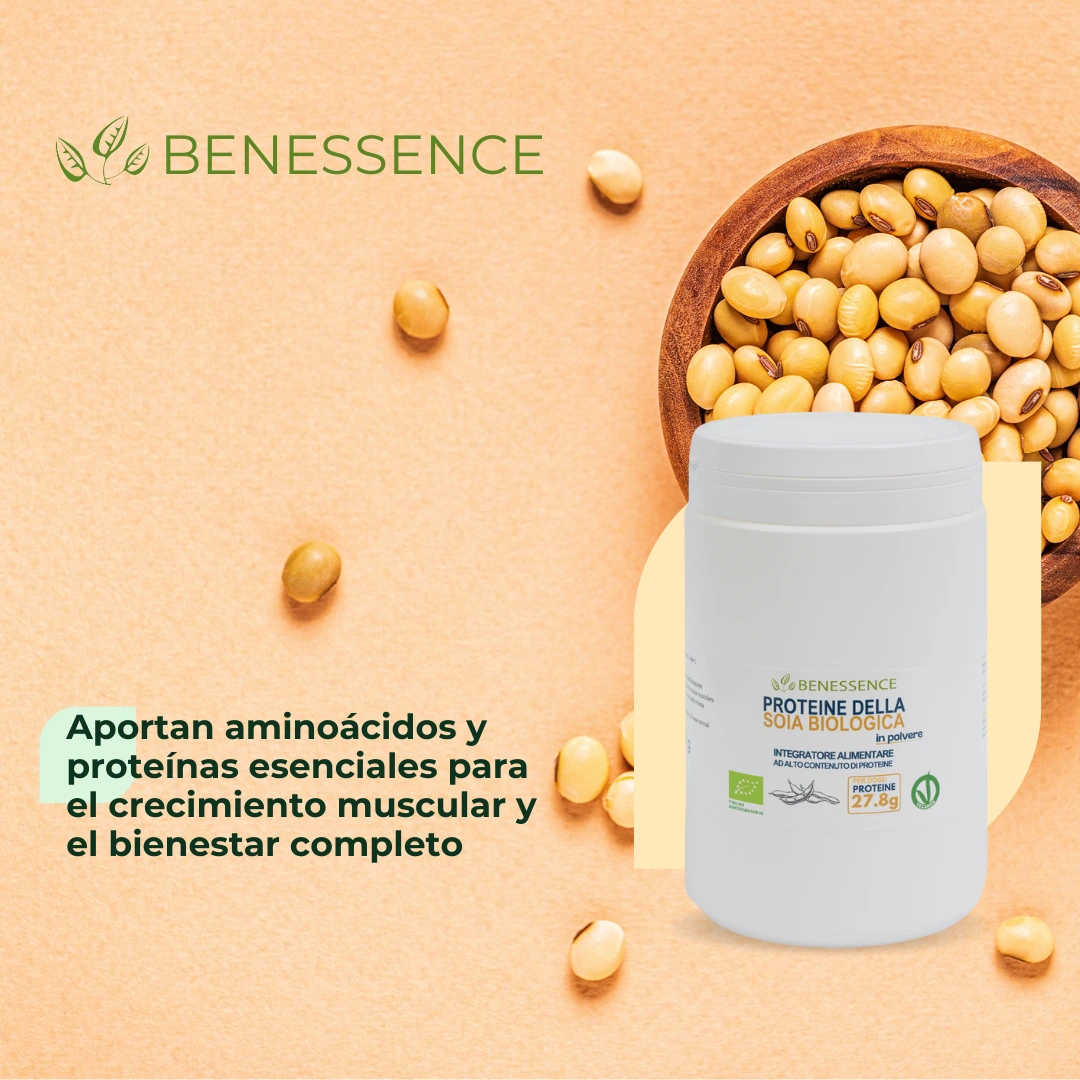 Por consiguiente, las proteínas vegetales de la soja ecológica constituyen una fuente perfecta de proteínas y aminoácidos esenciales para favorecer el crecimiento y el mantenimiento de la masa muscular y promover la salud ósea.