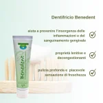 Benedent è formulato con una combinazione efficace di ingredienti naturali, tra cui l’Aloe Vera e l’olio essenziale di Menta, arricchito con Xilitolo. Le proprietà lenitive e decongestionanti dell’Aloe Vera svolgono un ruolo chiave nel contribuire a prevenire infiammazioni e sanguinamenti gengivali. Grazie a questa componente, il dentifricio offre un sollievo rinfrescante e contribuisce a mantenere la salute delle gengive.