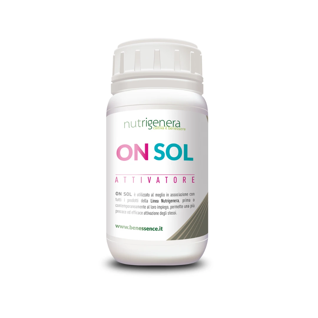 On Sol è un estratto acquoso di alghe brune ed estratti vegetali. Funge da attivatore per il prodotto.