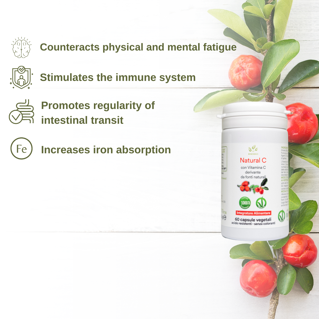 Natural C: capsule con Acerola e Rosa Canina-60 cps