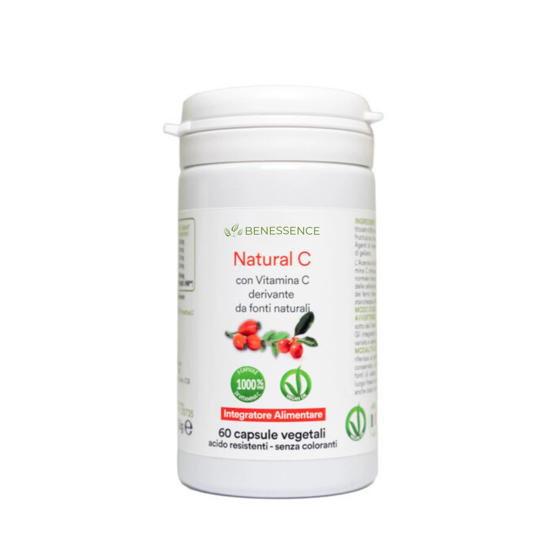 Natural C in capsule vegetali gastroresistenti è un prodotto innovativo, formulato con estratti secchi di Acerola e Rosa Canina, piante naturalmente ricche di bioflavonoidi e conosciute per essere eccellenti fonti di Vitamina C. Questi ingredienti naturali lavorano in sinergia per fornire al tuo organismo un apporto bilanciato di Vitamina C, essenziale per sostenere il sistema immunitario, combattere i radicali liberi e favorire la produzione di collagene, fondamentale per la salute della pelle, delle ossa e delle articolazioni.