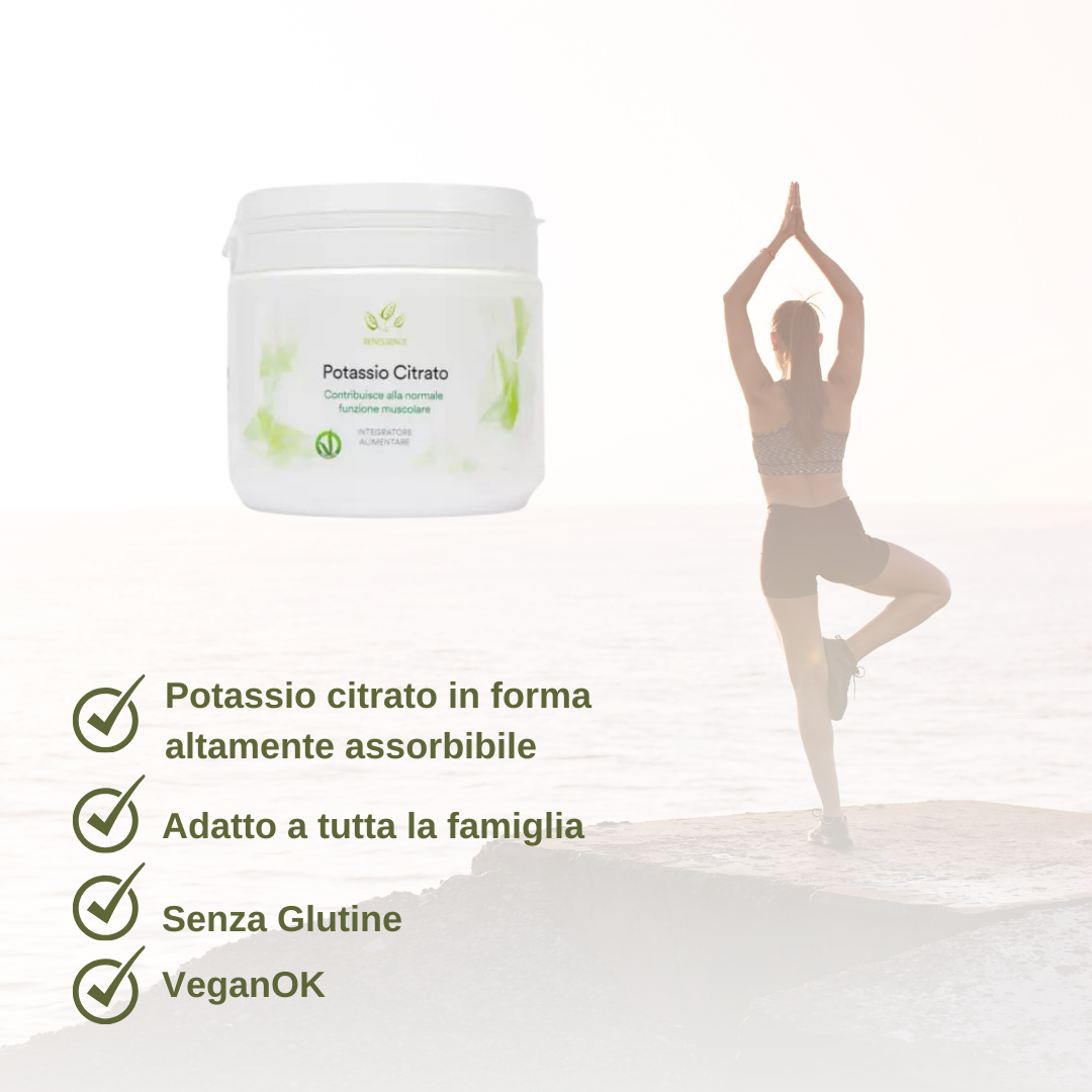 Il nostro prodotto offre 250 giorni di integrazione e contiene esclusivamente Potassio Citrato puro al 100%. Il potassio è un minerale essenziale per il corretto funzionamento dell’organismo, partecipando a numerosi processi vitali legati al benessere fisico.