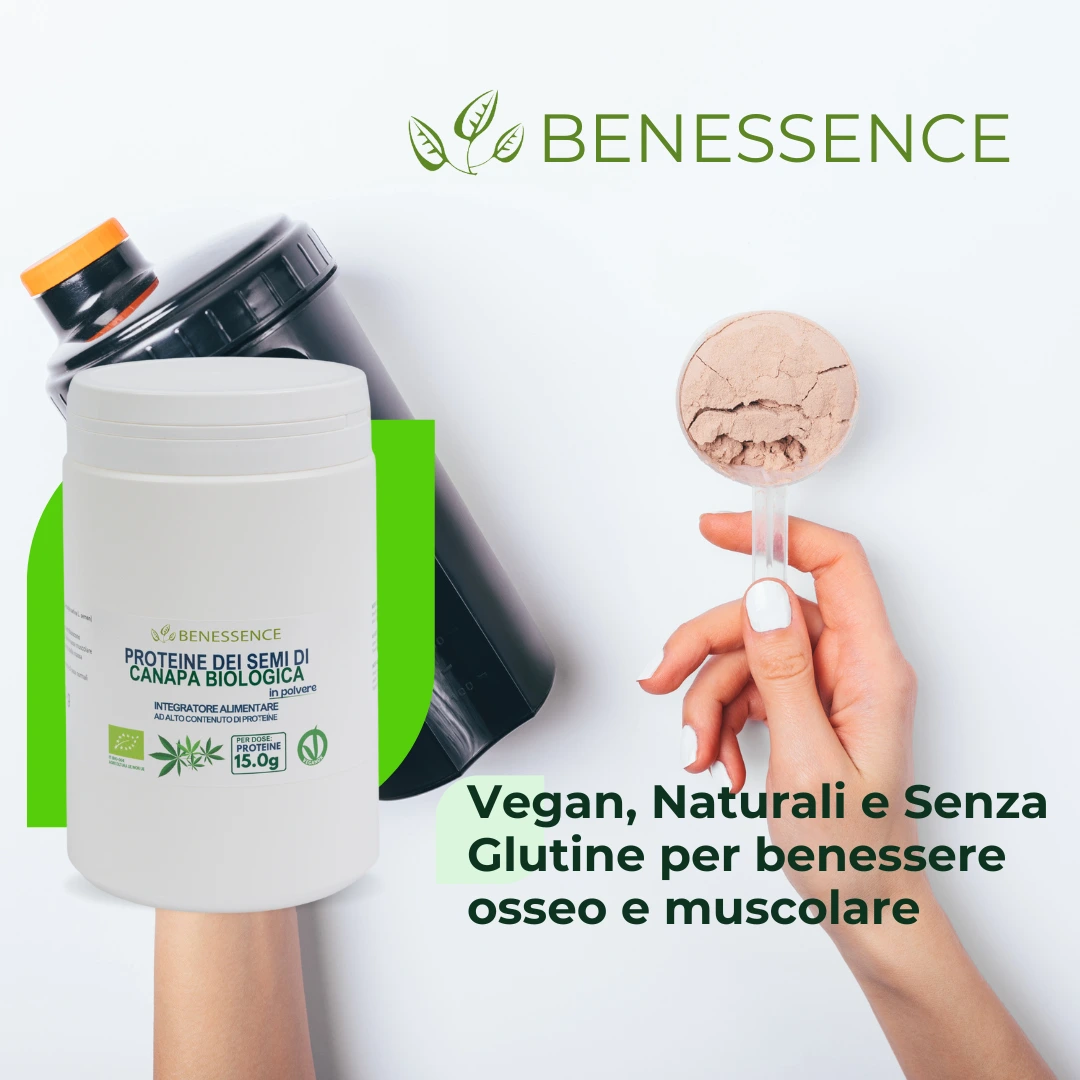• FONTE DI PROTEINE VEGETALI: I semi di canapa in polvere sono una fonte naturale di proteine. Perfetti per supportare il benessere muscolare e osseo. Una soluzione sana per integrare la tua dieta quotidiana.