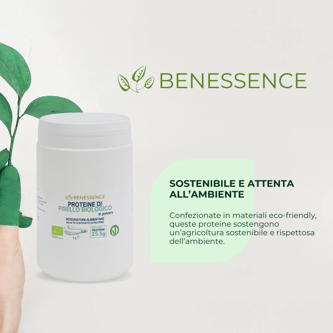 Le proteine fanno parte dei macronutrienti principali e svolgono numerose funzioni fondamentali per il nostro benessere. In particolare, le proteine hanno una importante funzione strutturale, essendo parte degli elementi costitutivi di molti tessuti corporei quali muscoli, pelle, capelli e unghie. Di conseguenza, le proteine vegetali di pisello biologico costituiscono una fonte proteica e di aminoacidi essenziali perfetta per supportare la crescita e il mantenimento della massa muscolare e promuovere la salute delle ossa. Numerosi studi hanno dimostrato che le proteine vegetali contribuiscono allo sviluppo della massa muscolare con la stessa efficacia delle proteine del latte, ma sono più sostenibili ed eco-friendly!