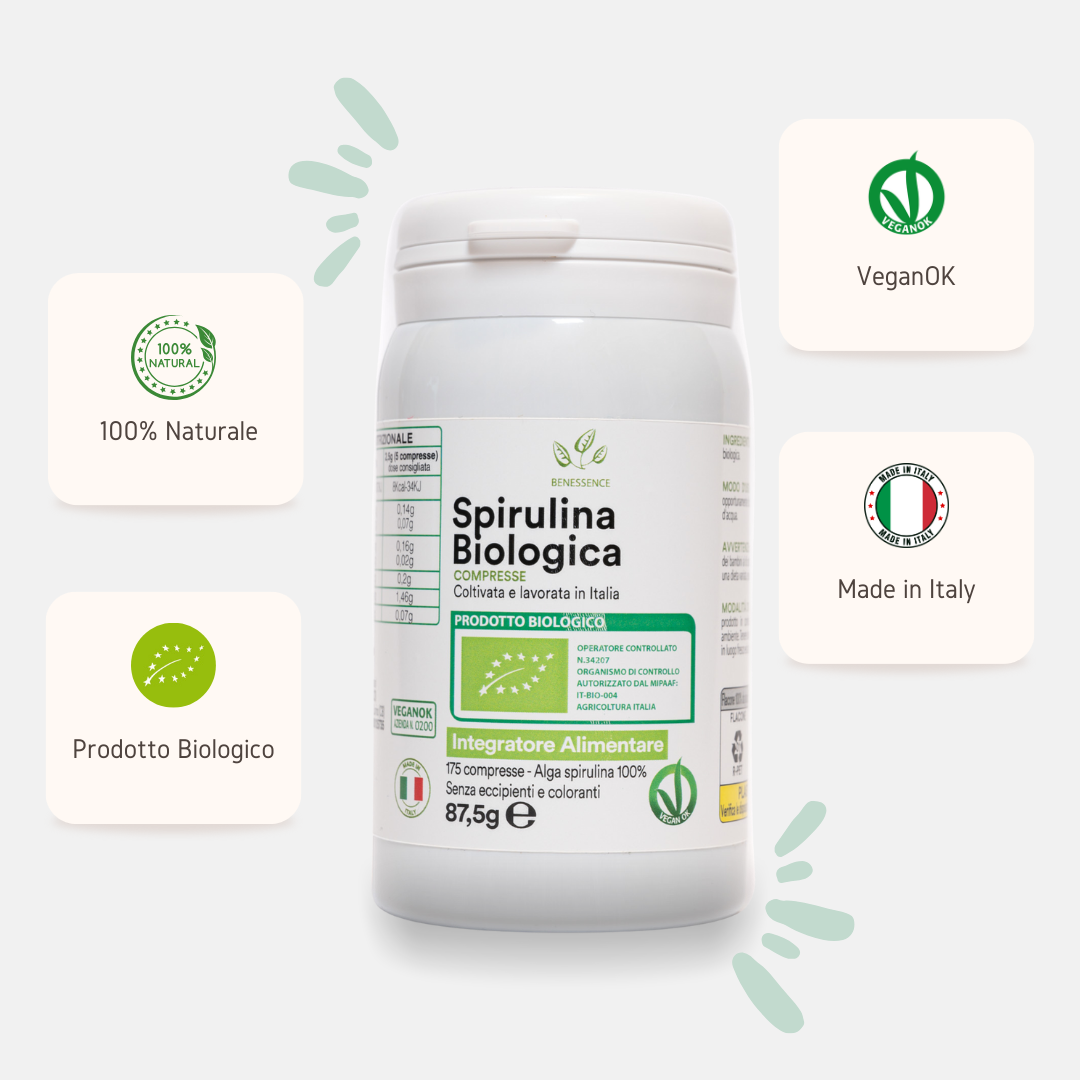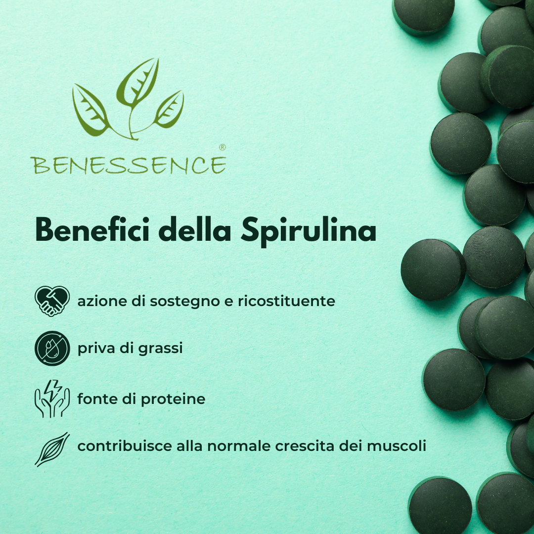 La spirulina ha un’azione di sostegno e ricostituente per l’organismo, è priva di grassi ed è fonte di proteine, fondamentali per il nostro organismo in quanto contribuiscono alla normale crescita dei muscoli e al mantenimento delle ossa.